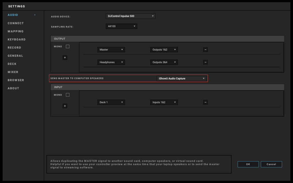 Vous pouvez facilement utiliser la sortie audio Master secondaire de DJUCED disponible pour d’autres applications via une carte son virtuelle lorsque vous diffusez en direct avec des applications telles que OBS, Streamlabs OBS ou d’autres logiciel de streaming. (Et nous allons vous montrer comment le faire).
