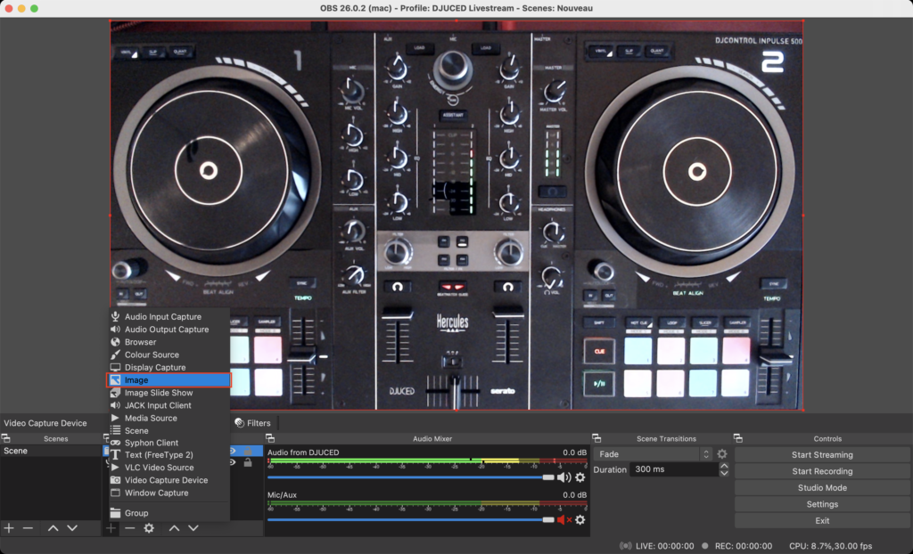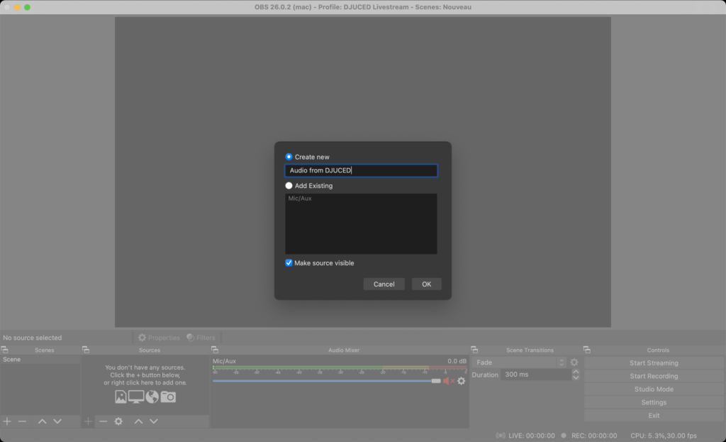 Maintenant que nous avons l’audio provenant correctement de DJUCED, il est temps d’ajouter des éléments visuels à notre Stream.