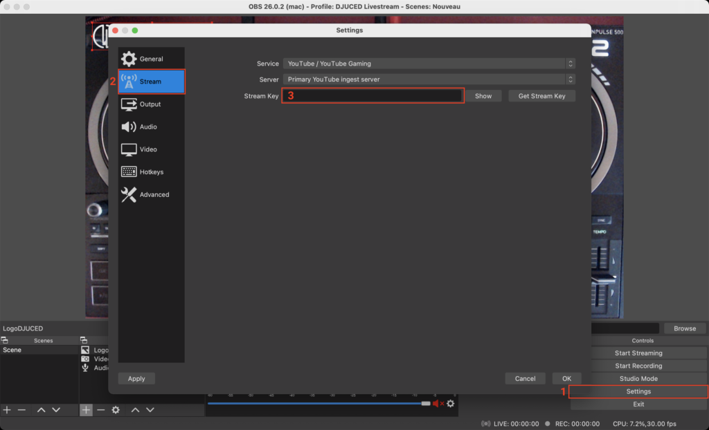 ETAPE 2 – CONFIGURER VOTRE STREAM AVEC OBS (OU AUTRE LOGICIEL DE STREAMING)