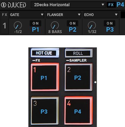 Le mode PadFX vous permet de contrôler les effets classiques des racks d’effets de DJUCED.