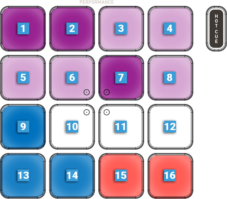 Press the MODE 1 button to set the Pads in Hot Cue mode.