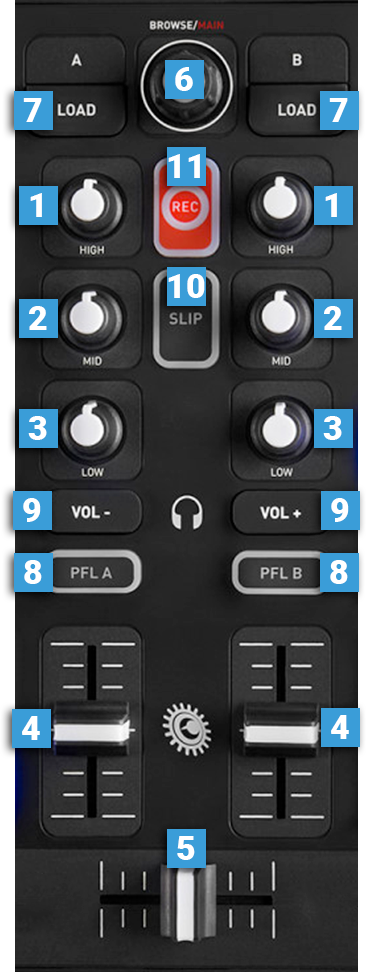 | 4 – Volume | Adjust the volume of the Left/Right deck. | Volume on Decks 3/4 |