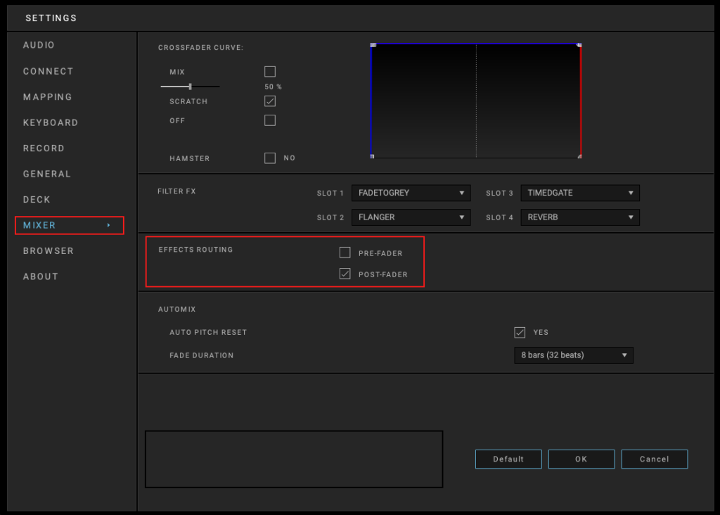 Par défaut sur DJUCED, certains effets sont traités « Post-Fader ».