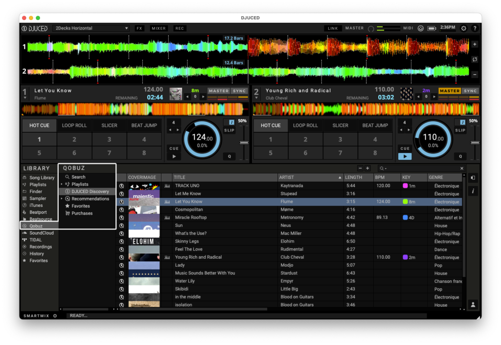 Qobuz is an online service that requires an Internet connection to work with DJUCED, and also a Premium Qobuz subscription.