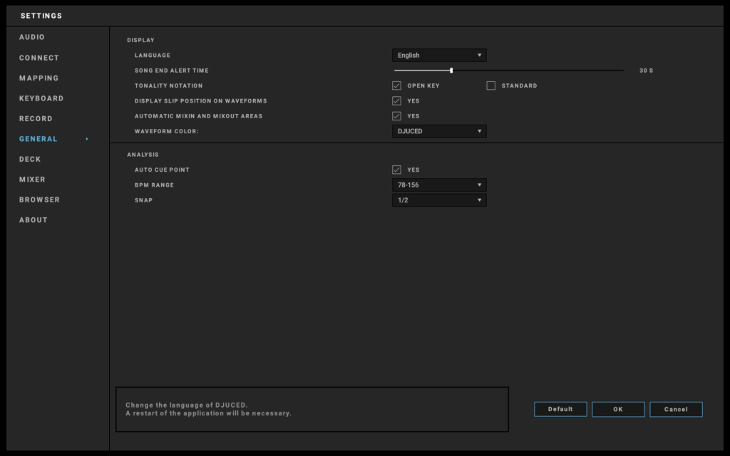 - Réinitialiser l’audio : restaurez les paramètres audio par défaut de tous les contrôleurs et cartes son certifiés DJUCED.