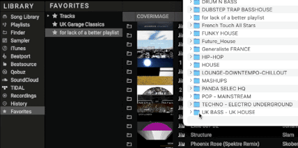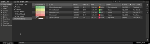 - Le navigateur (zone inférieure, ici en JAUNE); la bibliothèque de pistes est l’emplacement de stockage des fichiers de musique.