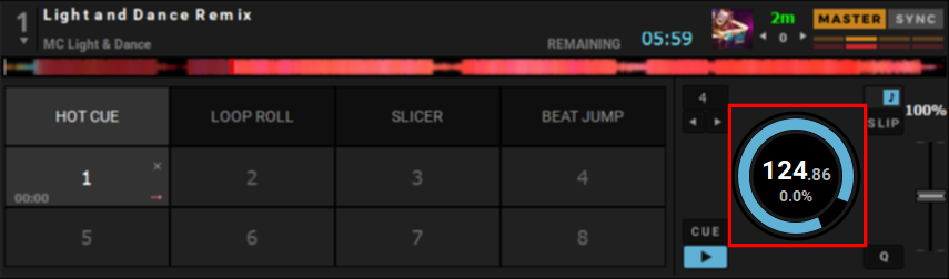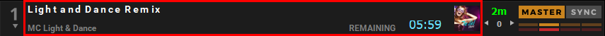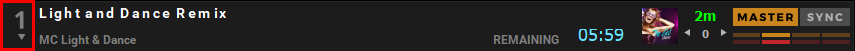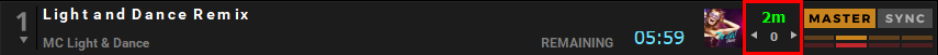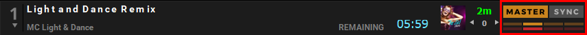 Par défaut, la synchronisation « SYNC » est permanente et lorsqu’une nouvelle piste est chargée, le SYNC reste et le BPM de la piste est synchronisé avec la piste MASTER.