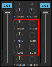 - Par défaut, la plage d’EQ de DJUCED est de -24db à +12bd.