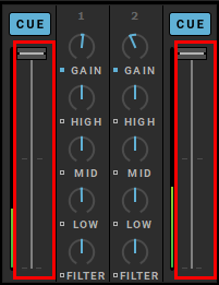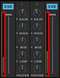 Des effets « post fader » sont présents même que la glissière de volume d’une platine est baissée.