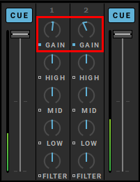 - Désactivation de l’AUTOGAIN si le contrôleur a des boutons de gain. DJUCED connaît la configuration matérielle du contrôleur connecté et désactive le gain automatique si le contrôleur possède un bouton de gain.