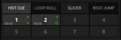 - Boucle enregistrée : enregistre une position de boucle, n’importe où dans la piste. Créez une CUELOOP et transformez-la en BOUCLE SAUVEGARDÉE.