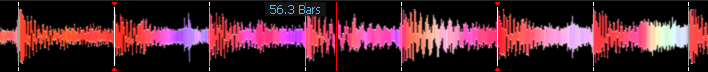 - Les platines (ici en BLEU), avec les formes d’onde horizontales (en ROUGE): ici peut charger et lire une autre piste ou des échantillons et contrôler la lecture.